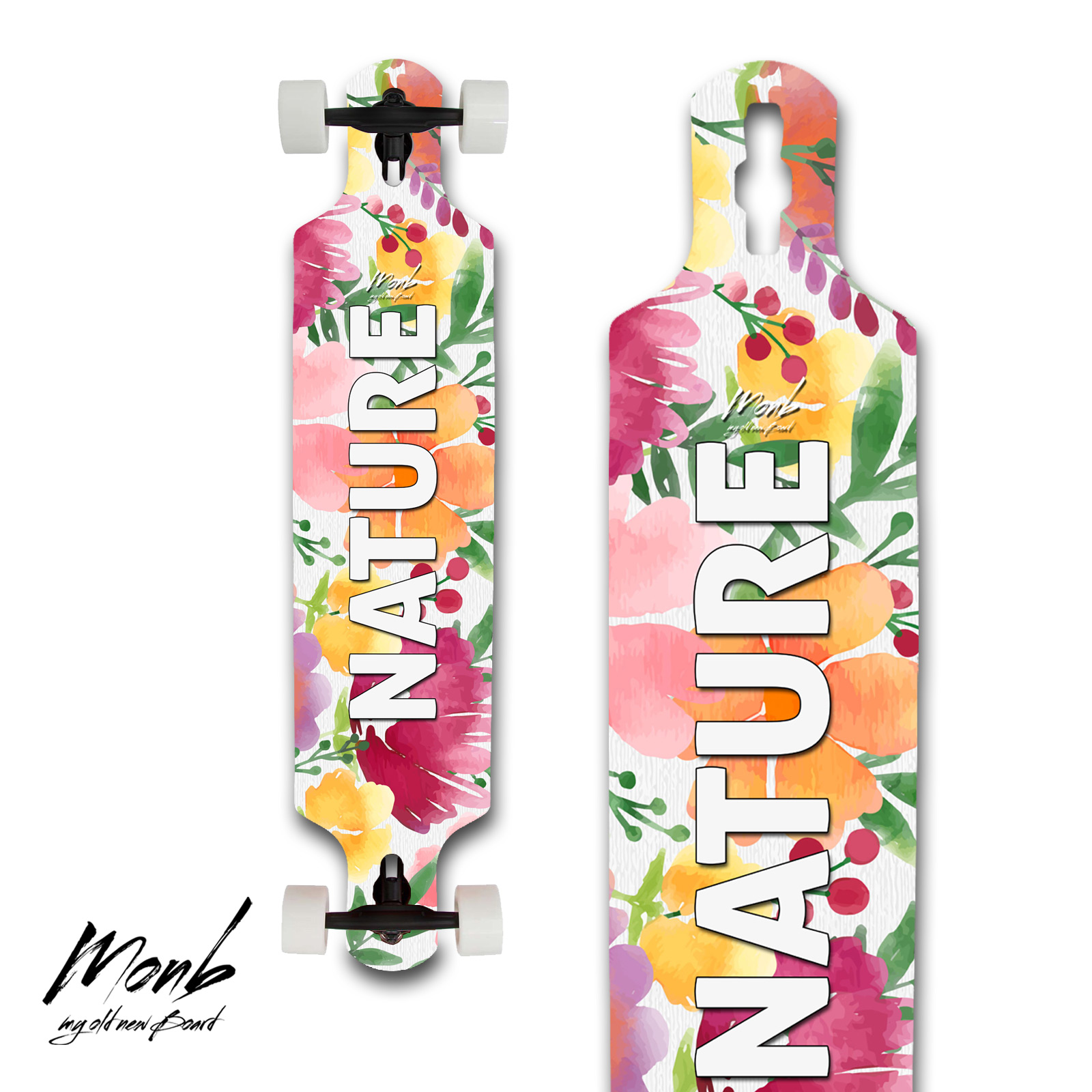 Vinilo decorativo de alta calidad con motivos naturales y florales, y la palabra Nature con el que renovar tu vieja tabla de Longboard